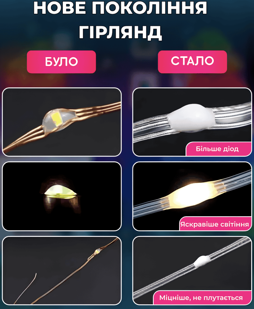 Оновлена конструкція має більше діодів, забезпечує яскравіше світіння та використовує міцніші дроти, що не плутаються.